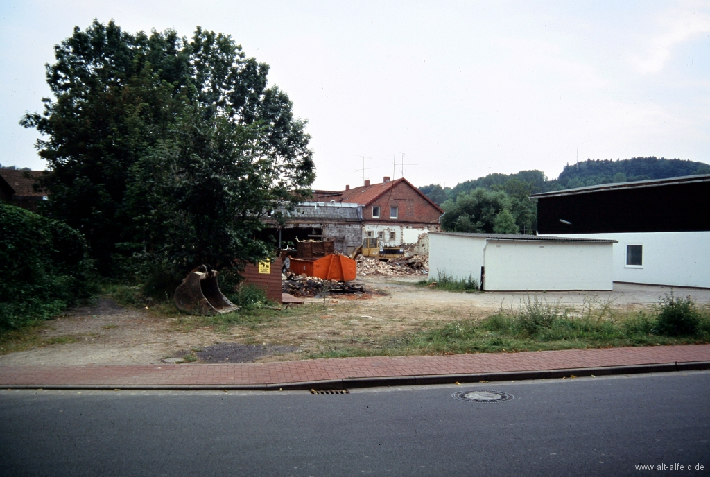 Abriss der Gaststätte „Zum Hödeken“ 1998 und angrenzender Gebäude am Bahnhof (Bahnhofsgelände) in Alfeld.