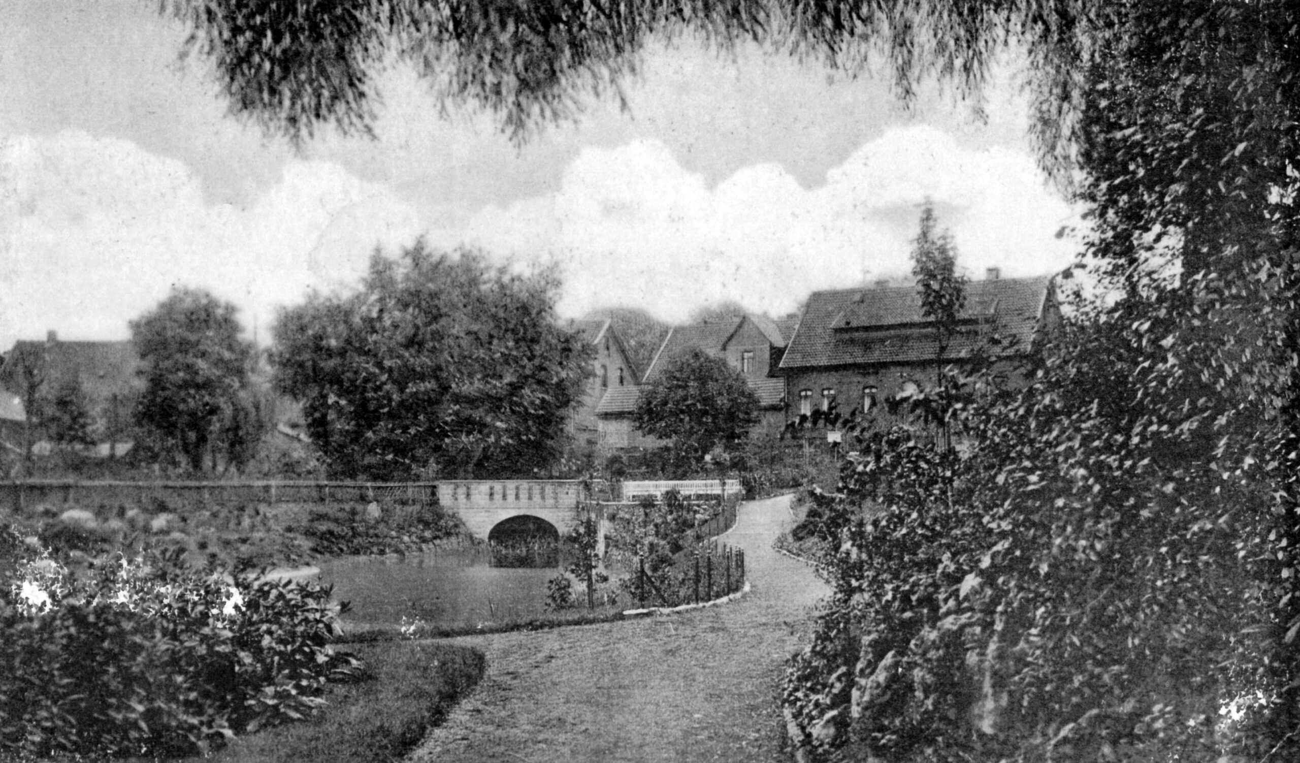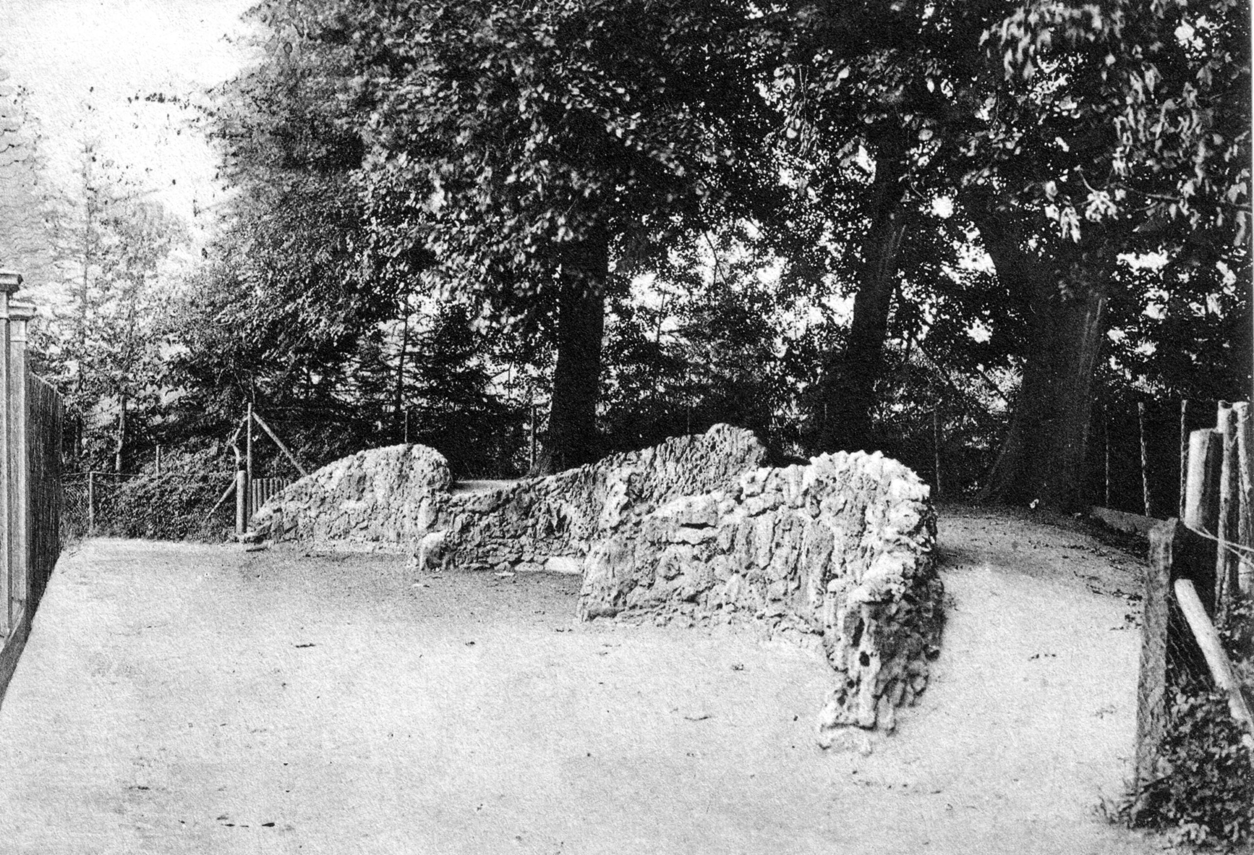 Ein Schattendasein im Bewusstsein der meisten Alfelder führt die „Grotte“ im Bereich der unteren Anlagen. Die nachfolgende Aufnahme zeigt das auf den ersten Blick unscheinbare Bauwerk im Jahr 1916, welches sich im hinteren Bereich (Ostwall), in Richtung Holzer Straße befindet.