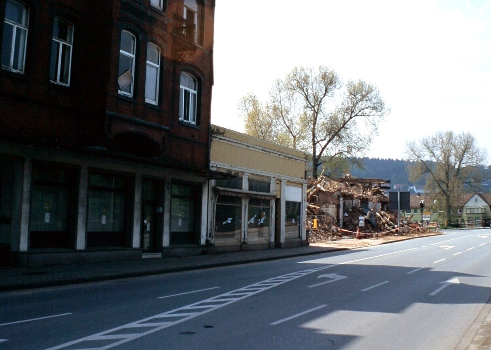 Anhand einiger Fotos aus dem Jahr 1996 zeigen wir Ihnen den Abriss des Kaiserhofes und angrenzender Gebäude, wie Reisebüro Kriescher, die ESSO-Tankstelle Osthoff usw.
