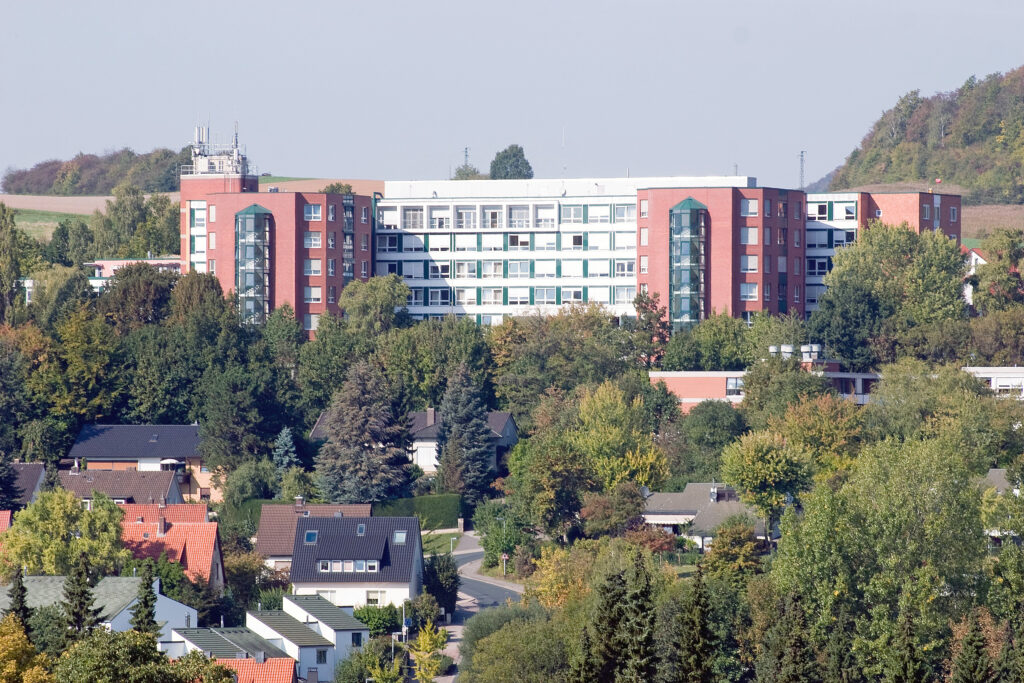 1964. Die Bauarbeiten am neuen Krankenhaus sind abgeschlossen. Die von 1945 bis dato in der „Weißen Schule“, der heutigen Realschule in der Bismarckstraße untergebrachten klinischen Abteilungen zogen in den Neubau am Eiberg um.