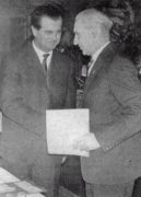 Abschied musste mancher auch aus liebgewordenen Ämtern nehmen. So sprach Friedrich Bartens am 22. Januar zum letzten Male als Vorsitzender des Kreislandvolkverbandes zu rund tausend Bauern im Kaiserhofsaal, sein Nachfolger wurde Diplom-Landwirt Heinrich Stadler. Am 29. März verabschiedete sich Oberstudiendirektor Dr. Schaper der nach Leer ging und kurz darauf wurde Oberstudiendirektor Gehrmann in sein Amt als Leiter des Gymnasiums Alfeld eingeführt. Unmöglich können wir noch einmal aller Jubilare und Geburtstagskinder an dieser Stelle gedenken, nur der 70. Geburtstag des Alfelder Ehrenbürgers Wilhelm Barner am 2. Juli sei nochmals erwähnt. Wir besuchten ihn auch in diesem Jahre an seiner Ausgrabungsstätte auf der Hohen Schanze bei Winzenburg. Großes Aufsehen erregte auch in Alfeld die Abberufung des bewährten Hildesheimer Regierungspräsidenten Dr. Suermann. Wir waren bei seiner letzten Amtshandlung dabei, der Eröffnung der Landwirtschaftlichen Bezirksausstellung in Hildesheim und fehlten auch nicht bei der ersten Pressekonferenz seines Nachfolgers Dr. Rabus.
