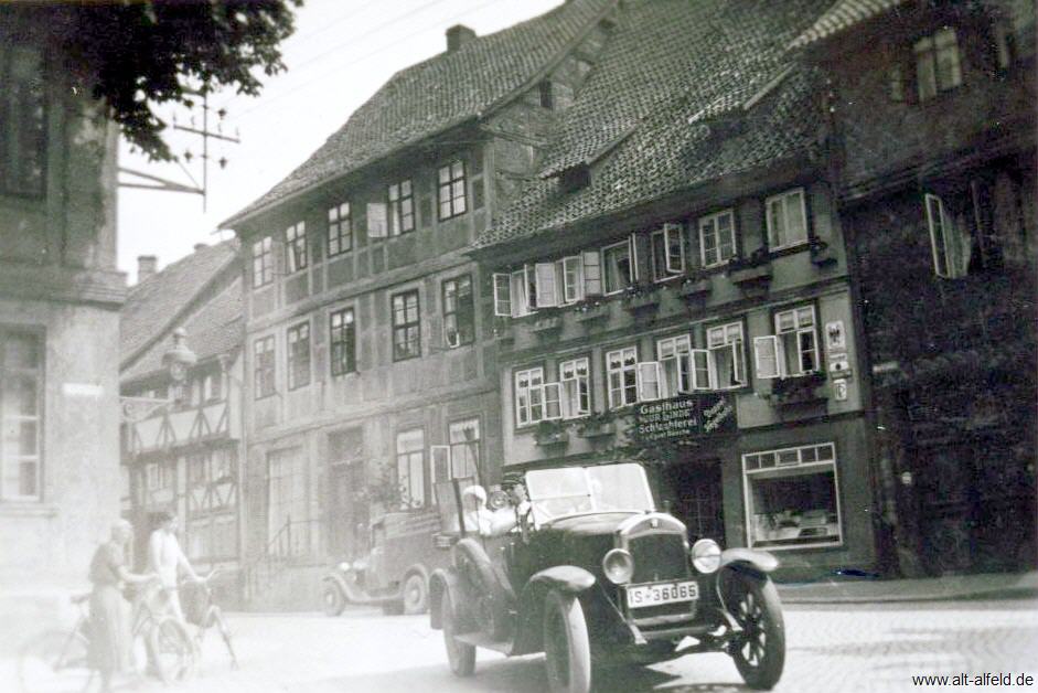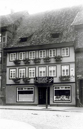 Schlachterei, Gastwirtschaft und doppelte Kegelbahn von August Rasche. Alfeld (Leine), Marktplatz.