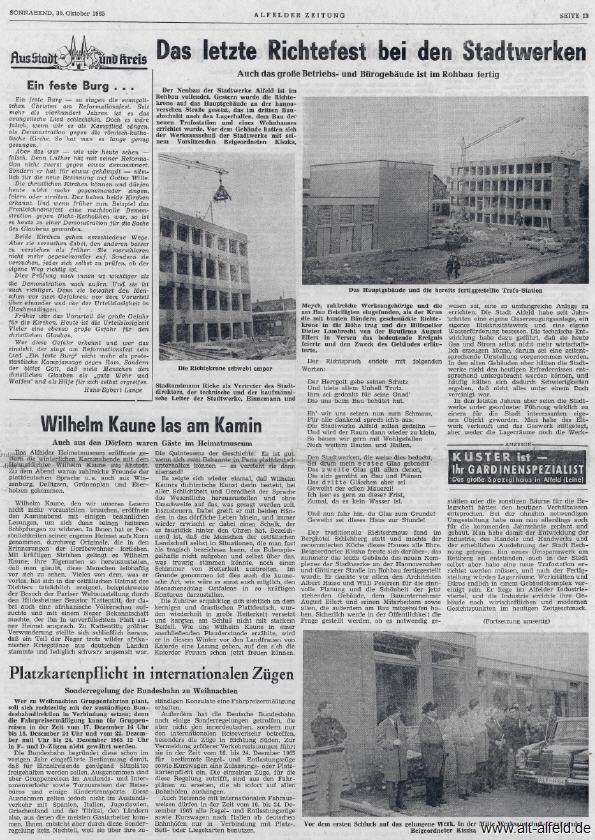 Nachfolgend einige Zeitungssausschnitte der Alfelder Zeitung zum Richtfest und Fertigstellung.