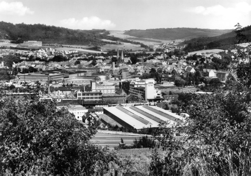 Nirgendswo sonst sieht man die gravierenden Veränderungen im Stadtbild so wie auf den folgenden beiden Fotos. Schauen Sie sich diese sehr genau an, klicken Sie auf das jeweilige Bild um zum vergrößern. Das linke wurde in den 1970er Jahren aufgenommen, das rechte 1995, beide in Blickrichtung Weinberg.