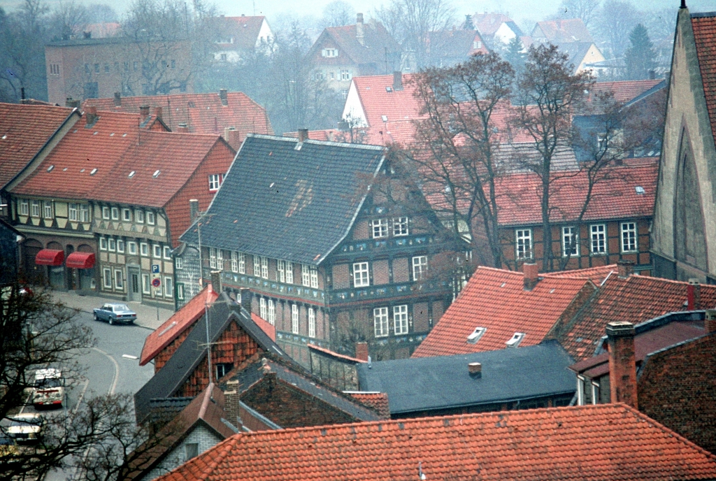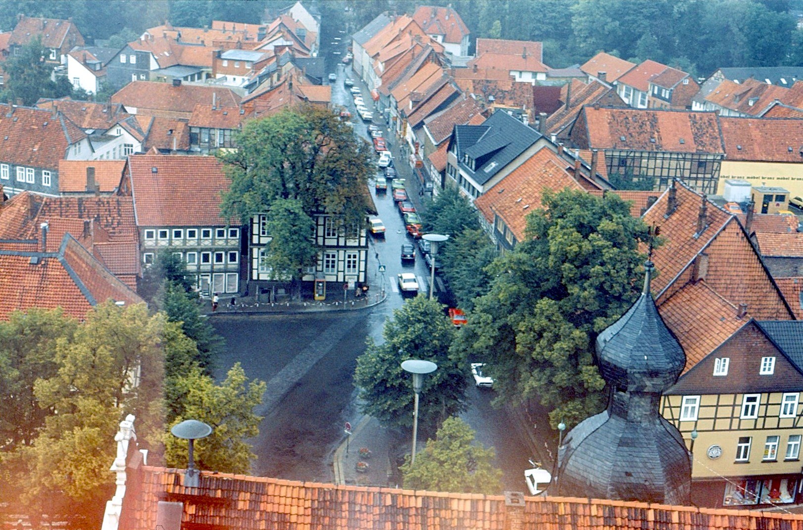 Blick vom Schlehberg 1860 – Dieses Bild ist ja wohl der Alt-Alfeld Klassiker schlechthin. Wir glauben mit diesem Motiv hat das alles mal angefangen, dieses Bild hing im Treppenhaus vom „alten“ Leinekauf