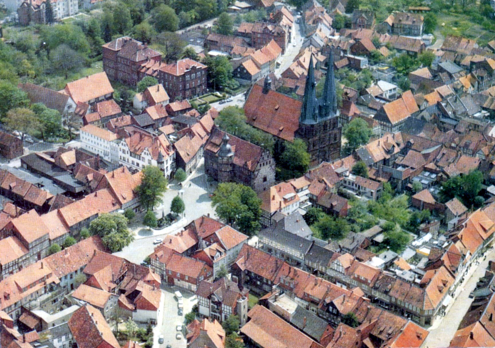 Luftbild1960er-01-Stadtmitte-PH-Weihnachtskarte AlfelderEisenwerke
