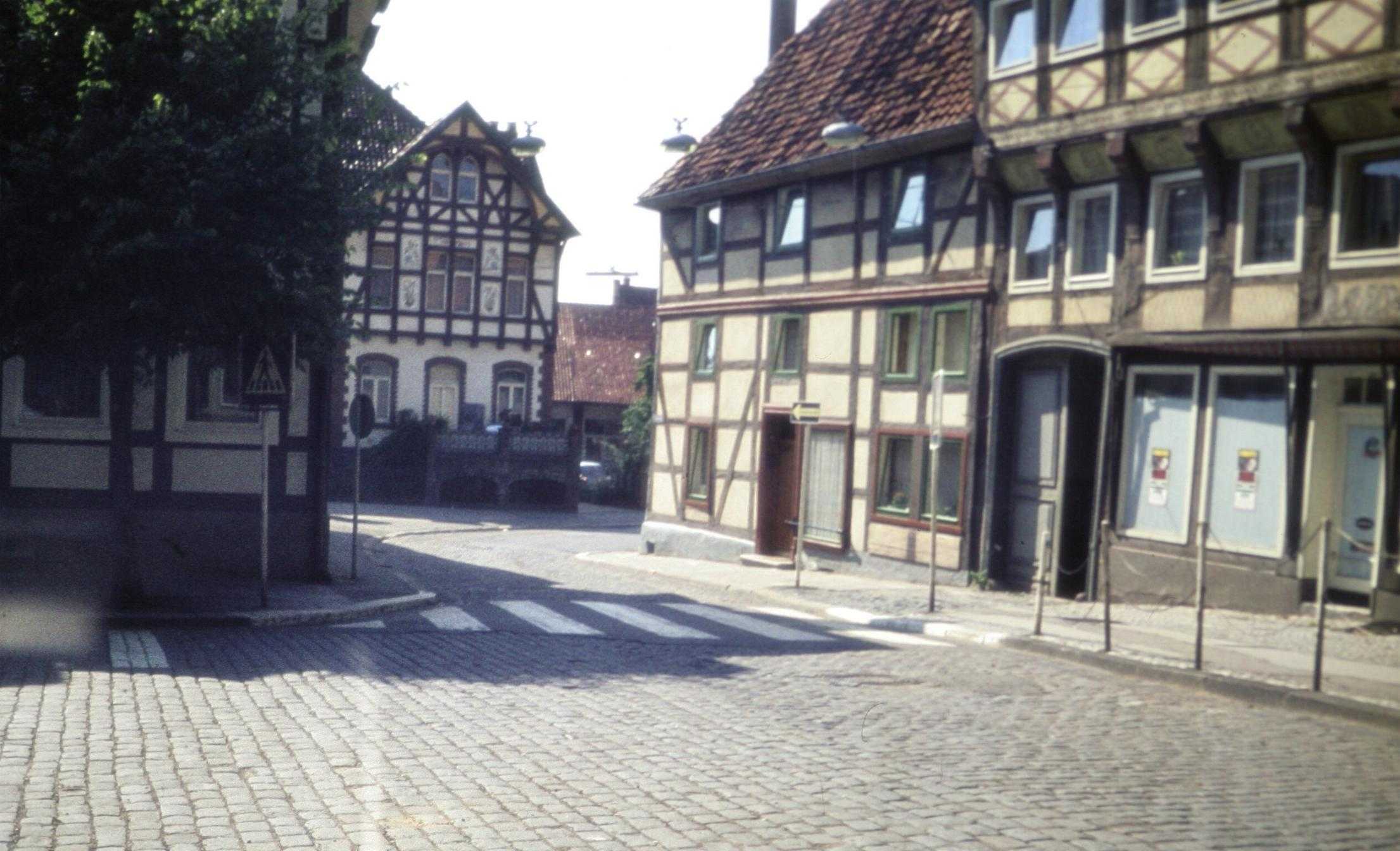 Das nachfolgende Bild aus dem Jahr 1969 zeigt eben diese Straße mit eben diesen Häusern wie wir sie in ihren Grundzügen heute noch vorfinden, wenn auch das Gebäude rechts im Bild eigentlich zur Holzer Straße gehört.