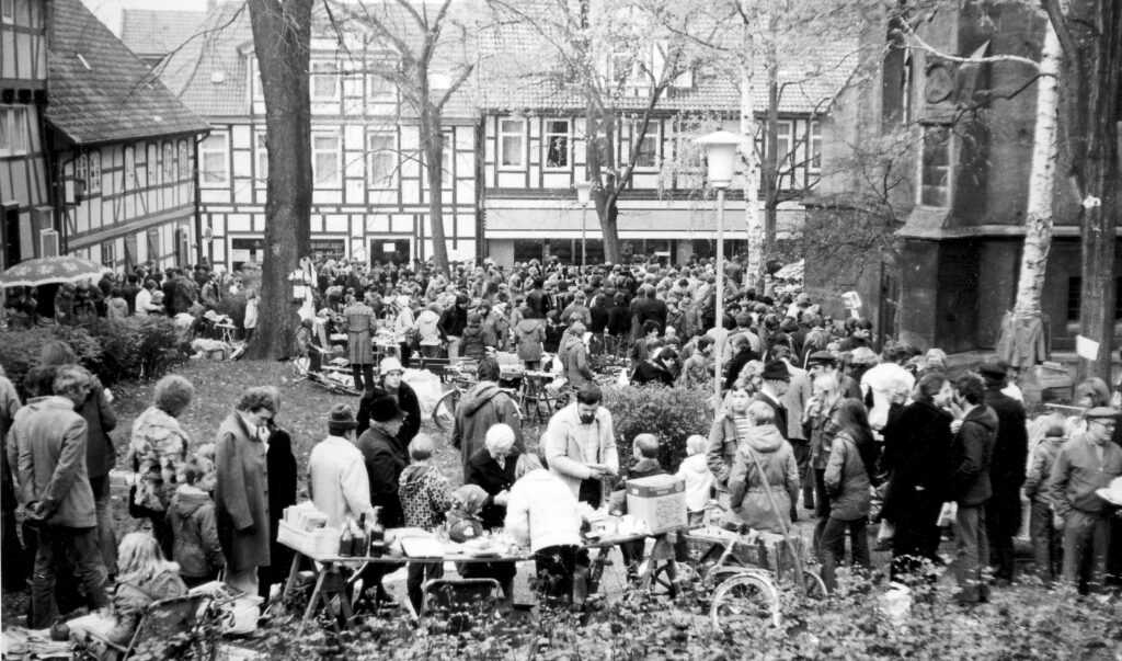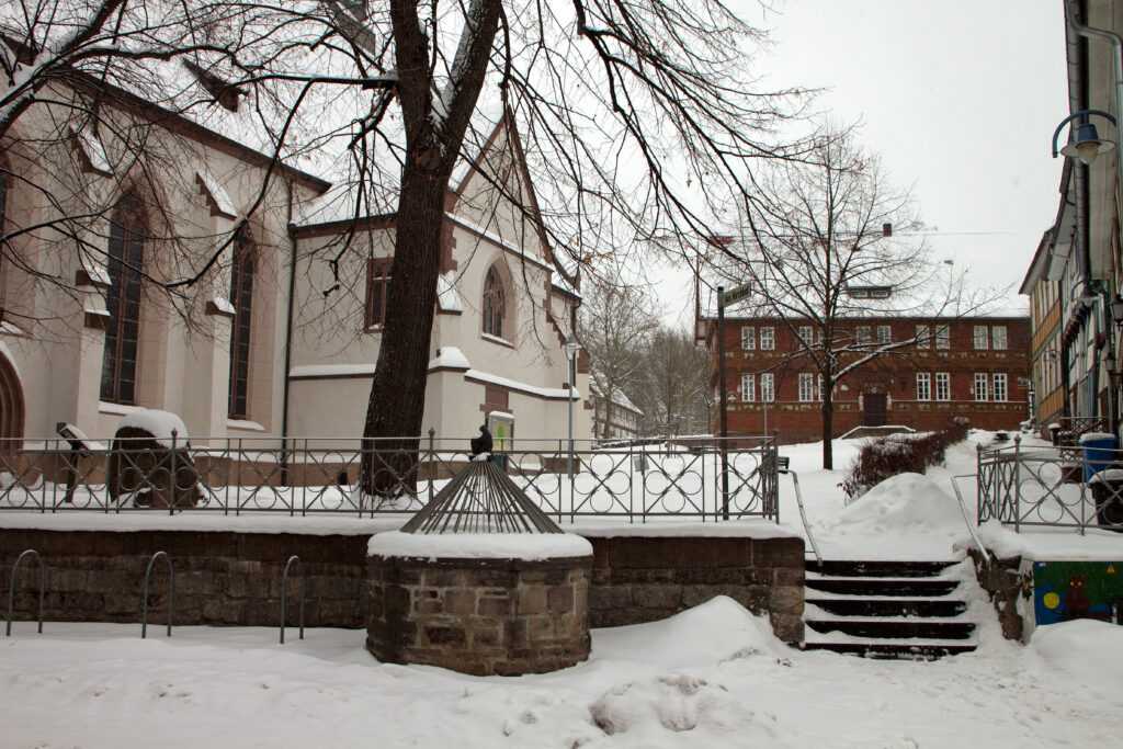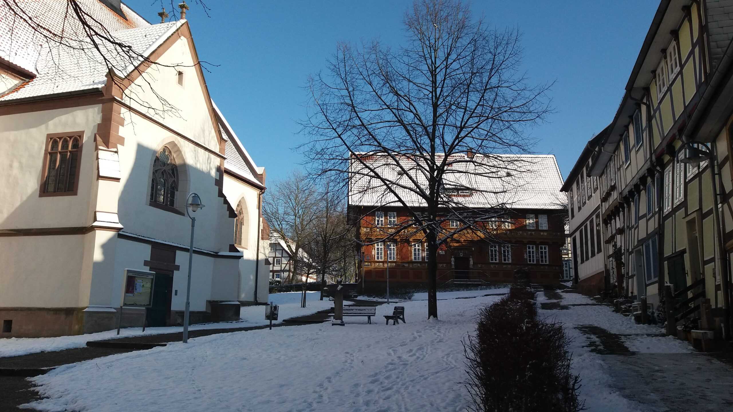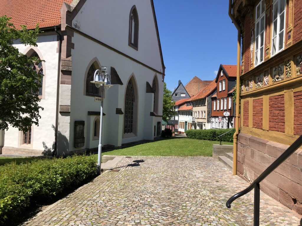 Wieviele Konfimanden, Brautleute usw. sind über diesen Platz schon gelaufen. Der Kirchhof bildet sich aus den historische Gebäuden der Alten Lateinschule, der St. Nicolai-Kirche und den Häusern der ehemaligen Alfelder Badstuben.