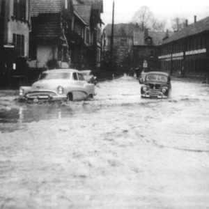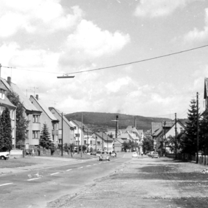 Die folgende Aufnahme zeigt den Schlehbergring in Alfeld (Leine), der zum Zwecke der Beseitigung des schienengleichen Bahnüberganges in den Jahren 1960 und 1961 gebaut wurde.