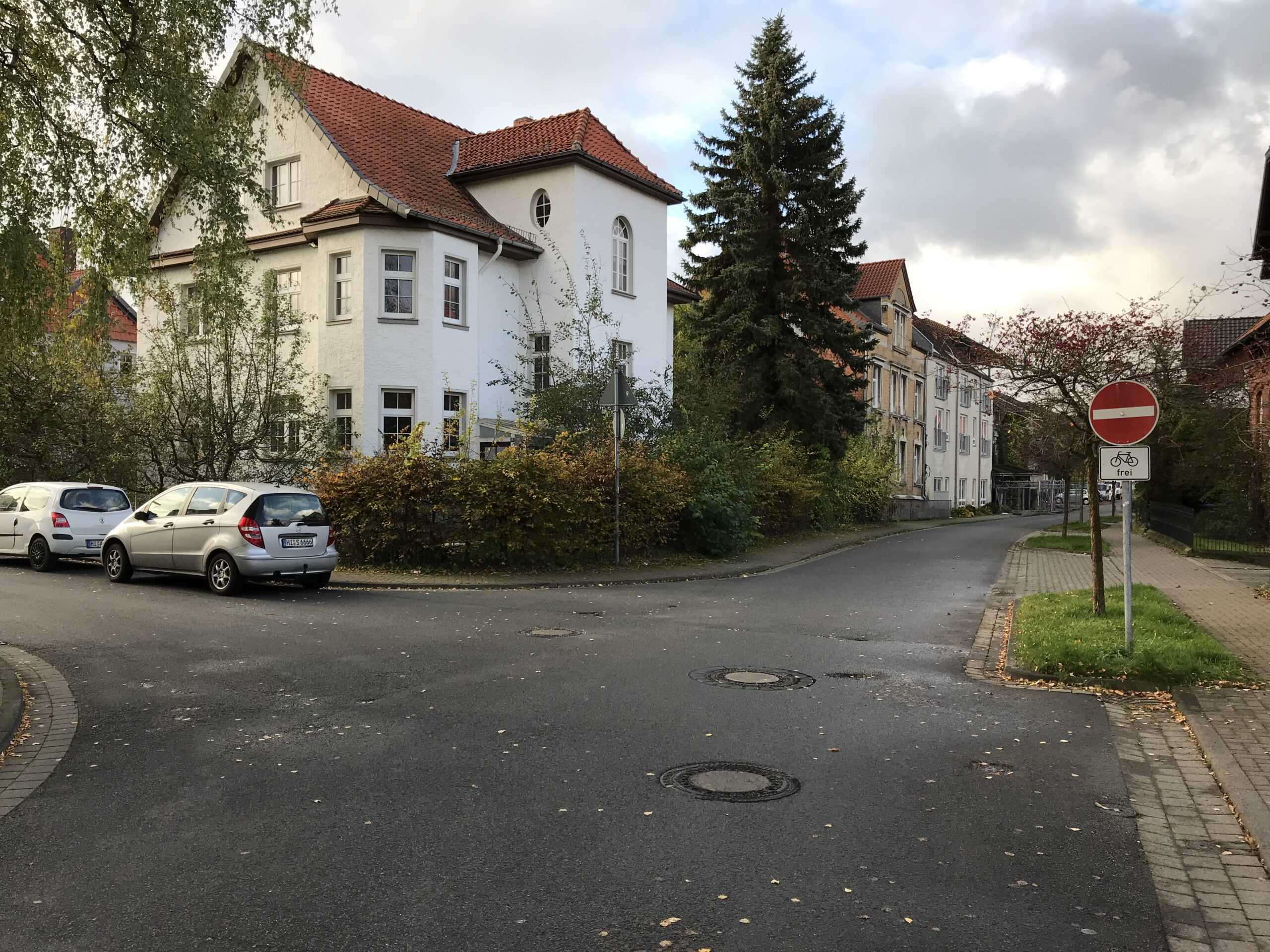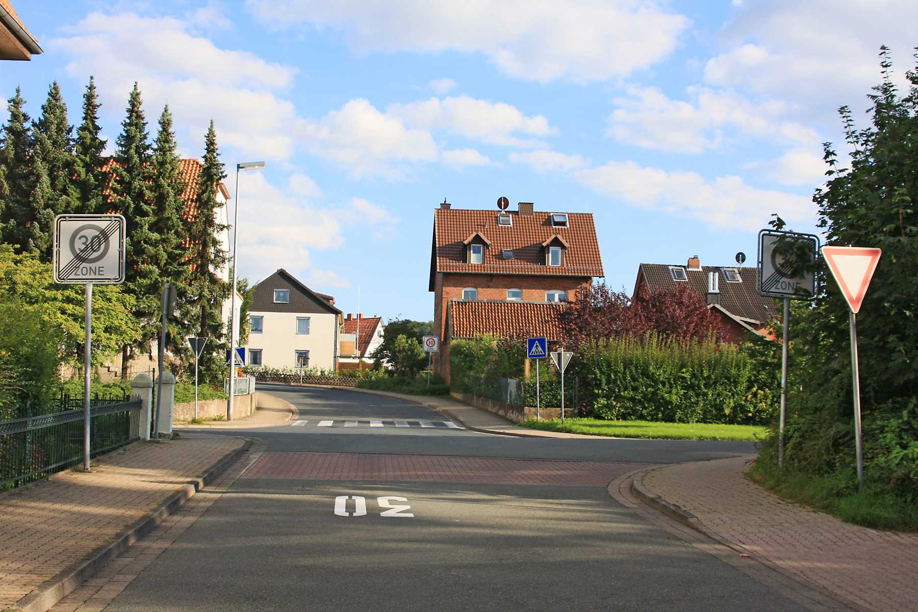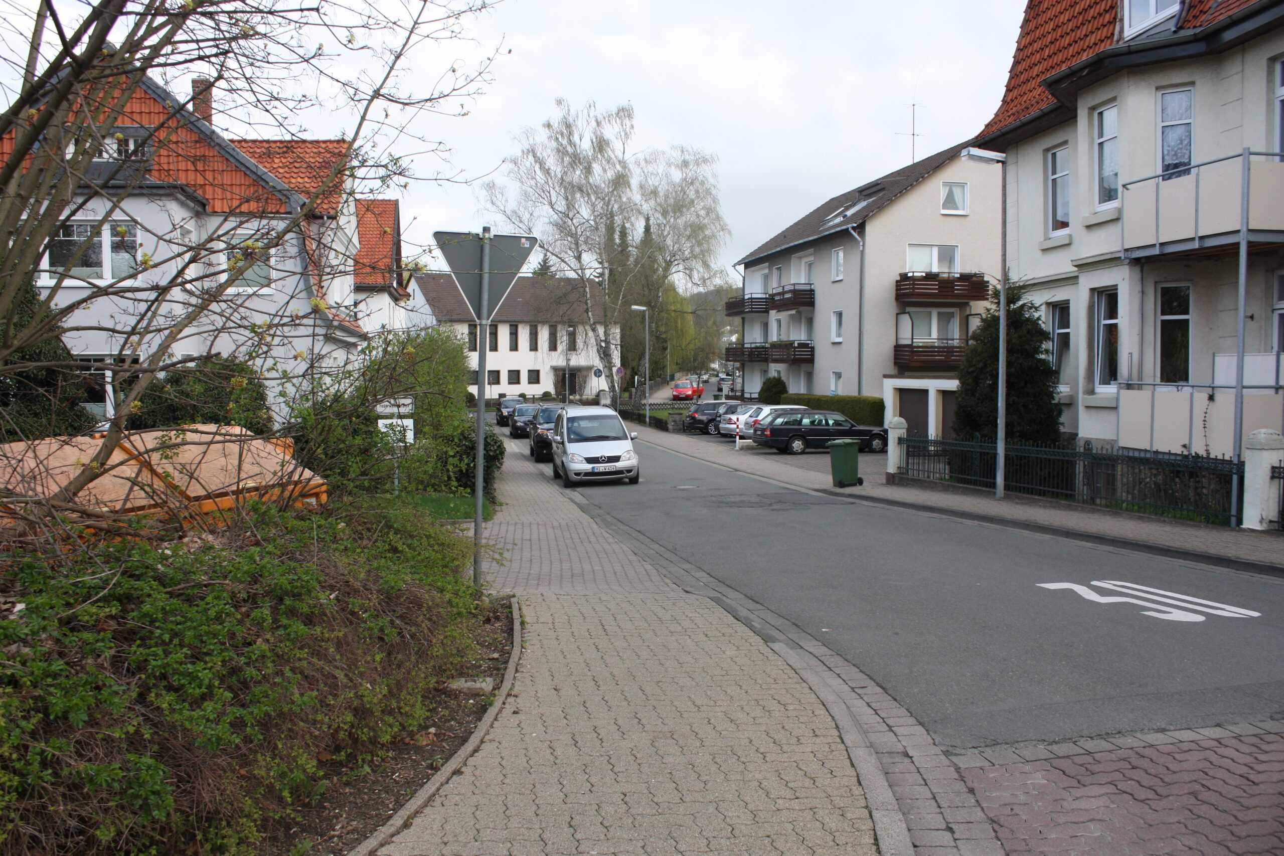 Diese Straße wurde einst nach der Kaufmannsfamilie Wiegand genannt. Sie war früher eine kleine, gemütliche Verbindungsstraße vom Antonianger zur Heinzestraße und Sindelberg, wie das nachfolgende Foto aus den 1960er Jahren zeigt. Das Haus, links im Bild, neigt sich seit Jahren aufgrund der schlechten Bodenbeschaffenheit unübersehbar kontinuierlich zur Seite. Somit ist das für Alfeld schon eine kleine Besonderheit.