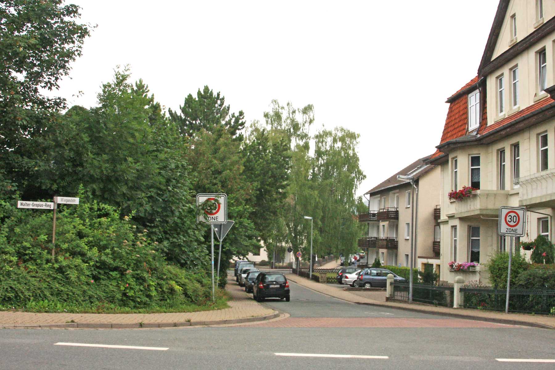 Im Zuge des Neubaus der neuen Tangente, dem heutigem „Walter-Gropius-Ring“ musste das Haus, links in der Mitte, diesem Bauvorhaben weichen, wie die Vergleichsaufnahme zeigt.