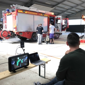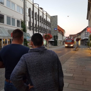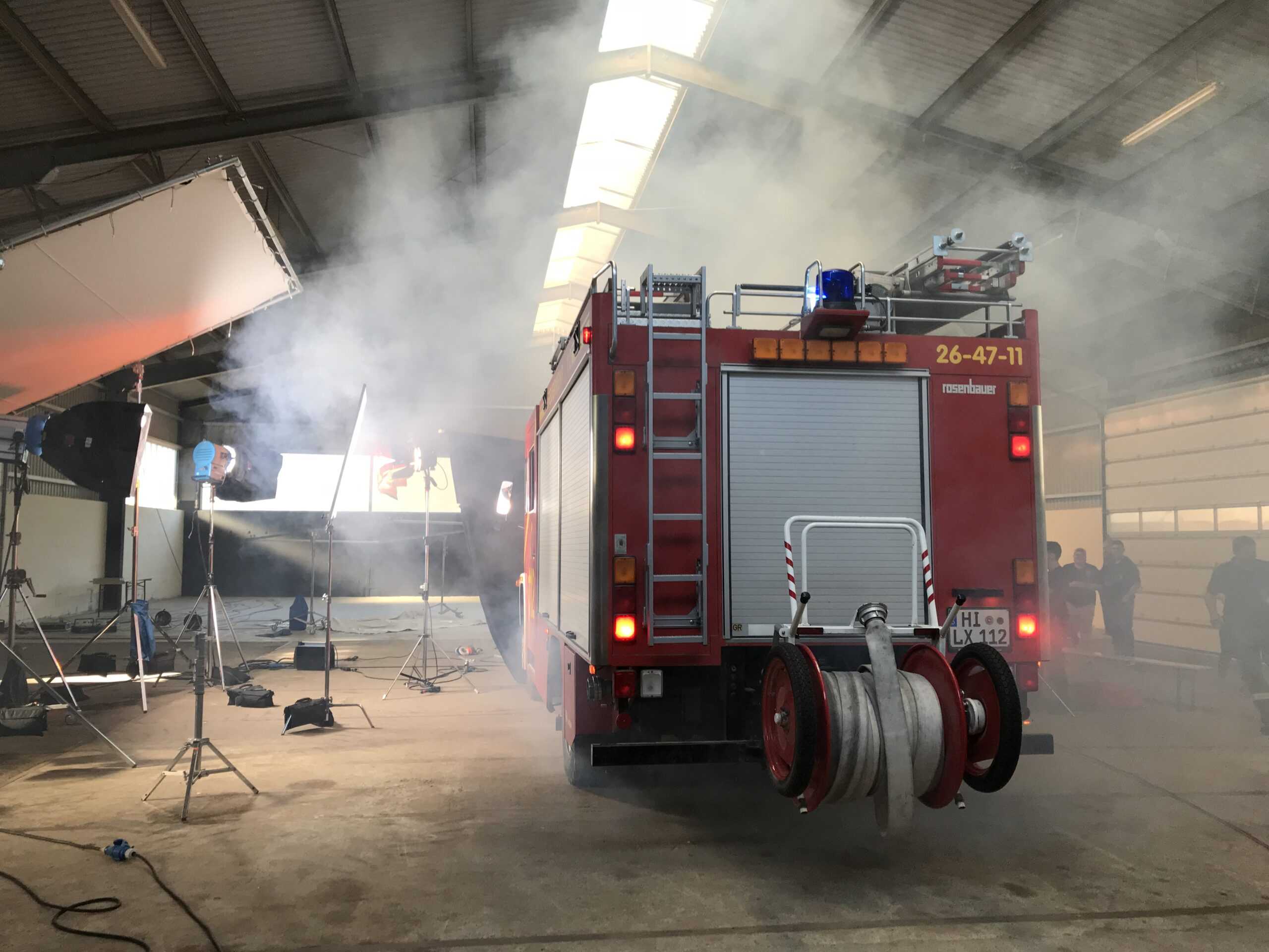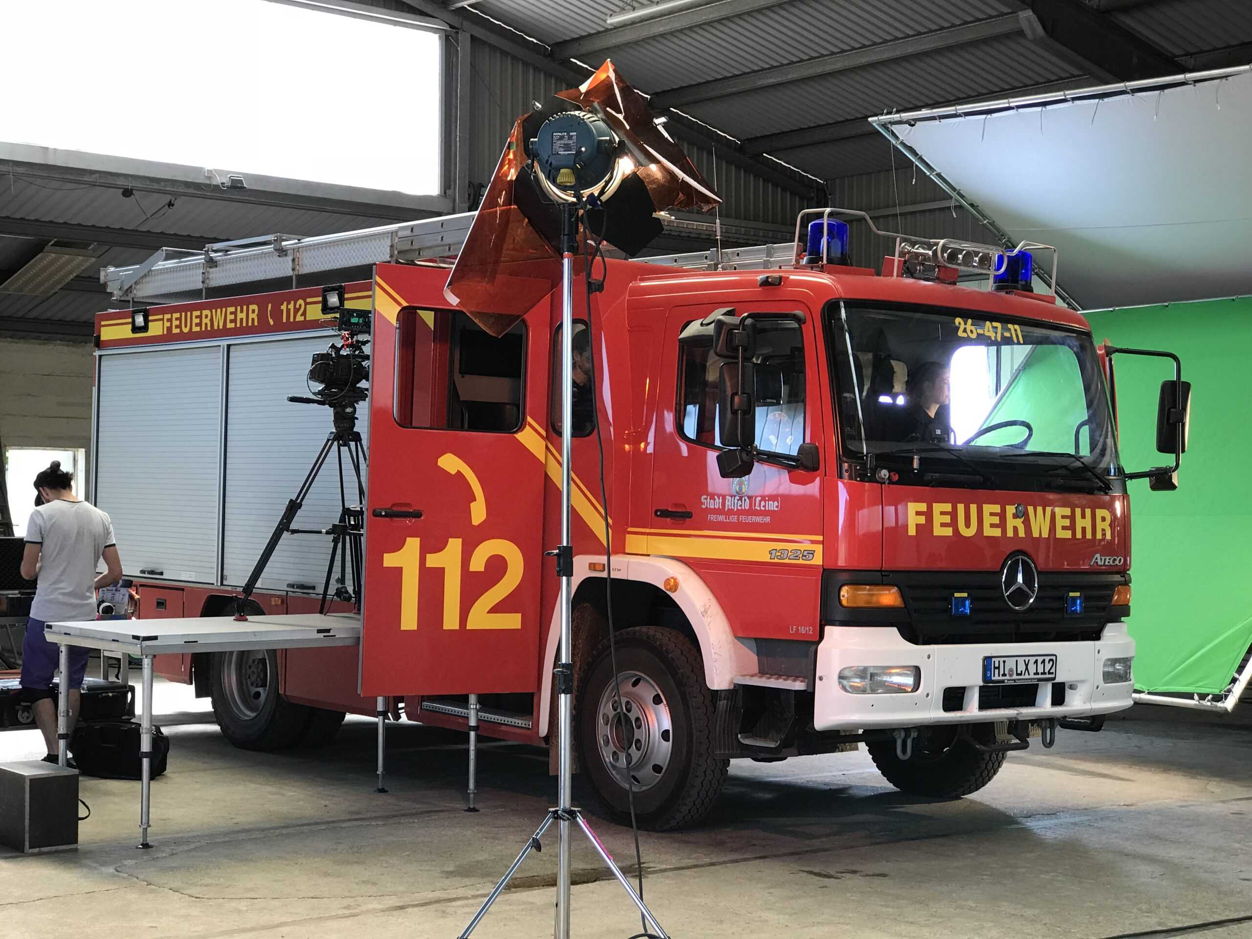 Wir teilten die sechs Rollen zu, präparierten eine Lagerhalle in Föhrste (unserem „Set“) und organisierten gemeinsam mit unseren Feuerwehrkameradinnen und -kameraden einen sensationellen, unvergesslichen Drehtag, der bis tief in die Nacht dauerte.