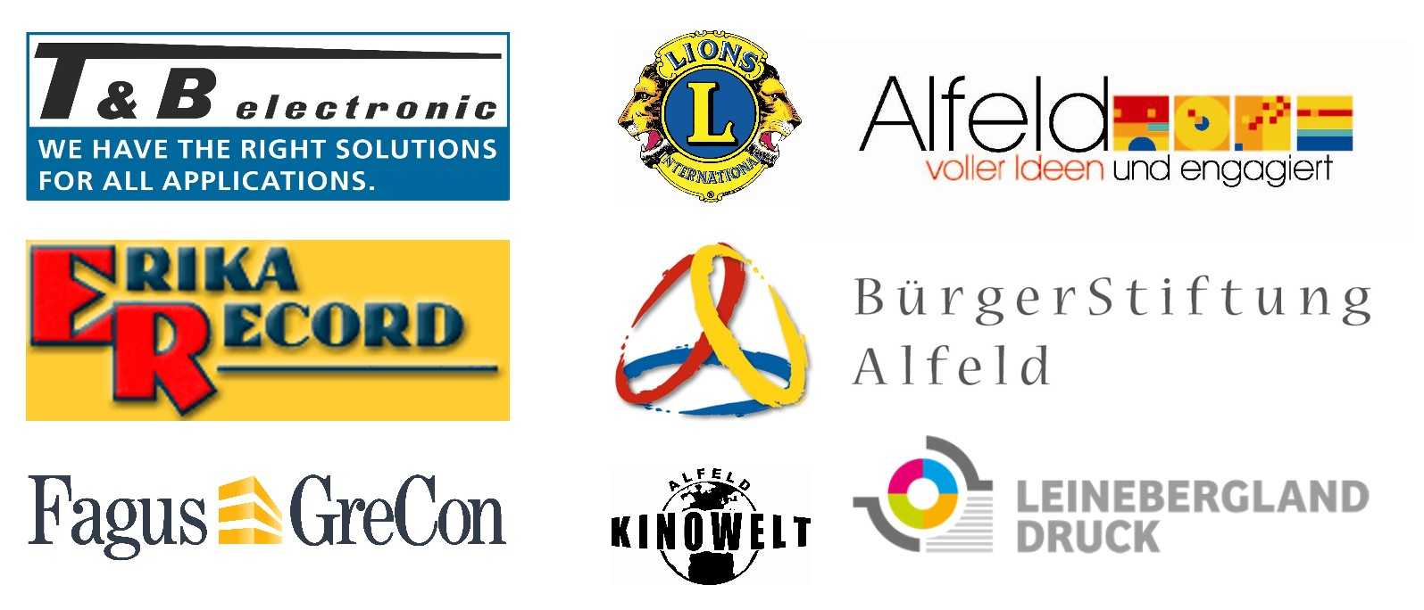 Volksbank Alfeld/Seesen, T & B electronic, Bäckereimaschinen Schmidt, Bürgerstiftung, Lions-Club, Fagus GreCon, Kinowelt, Leinebergland Druck, Stadt Alfeld (Leine), alt-alfeld.de